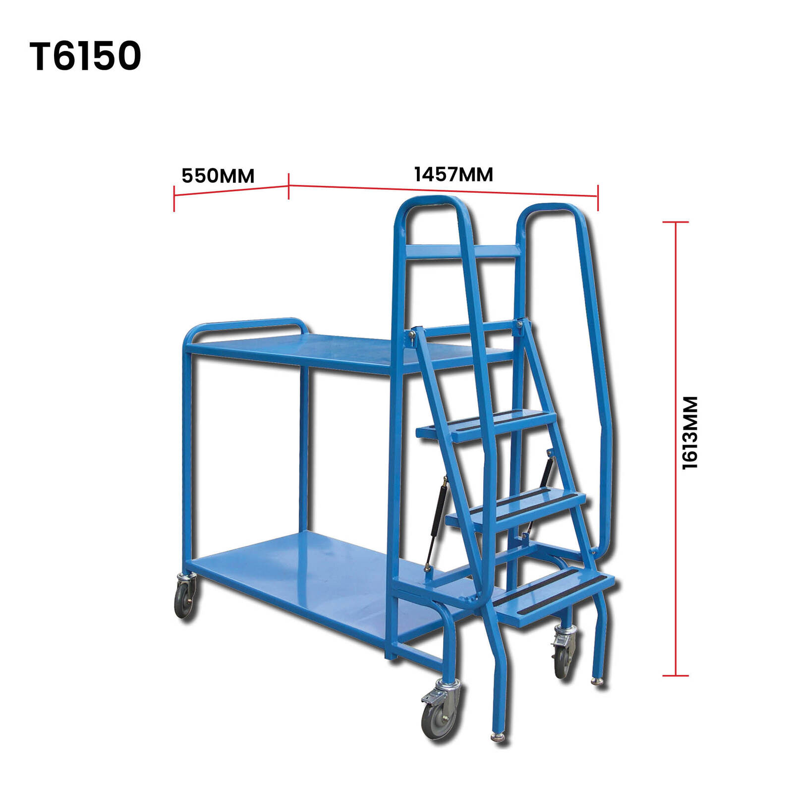 در تولید این چرخ دستی حمل بار ،ترولی صنعتی از جوش کاری co2 منظم رنگ کوره ای الکترو استاتیک استفاده شده است .نردبان ترولی در هنگام جابه جایی از زمین جداشده . چرخ های قفل شونده جهت جلوگیری از حرکت در هنگام استفاده